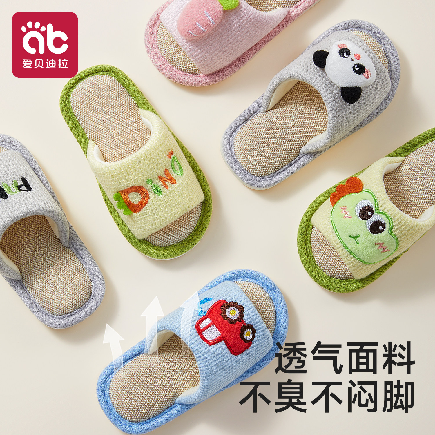 儿童拖鞋亚麻秋室内防滑防臭宝宝幼儿园小朋友午睡四季居家男女童