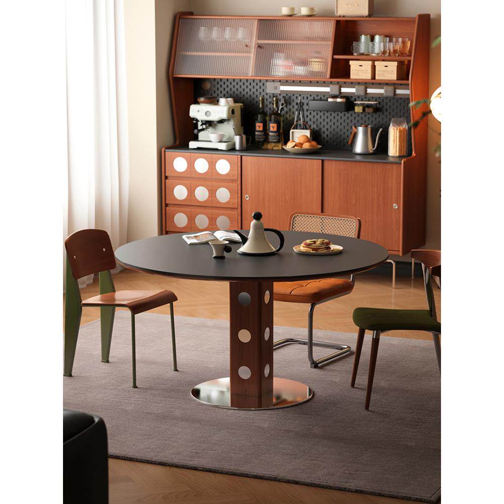 奈斯/法式中古风圆形岩板餐桌小户型家用网红包豪斯洽谈圆桌饭桌