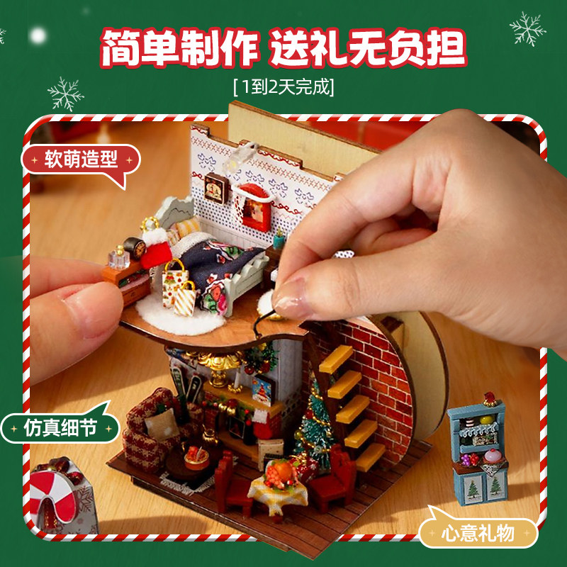 diy圣诞小屋手工拼装迷你房子微缩模型积木拼图玩具圣诞节礼物