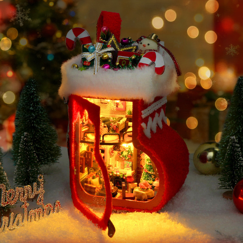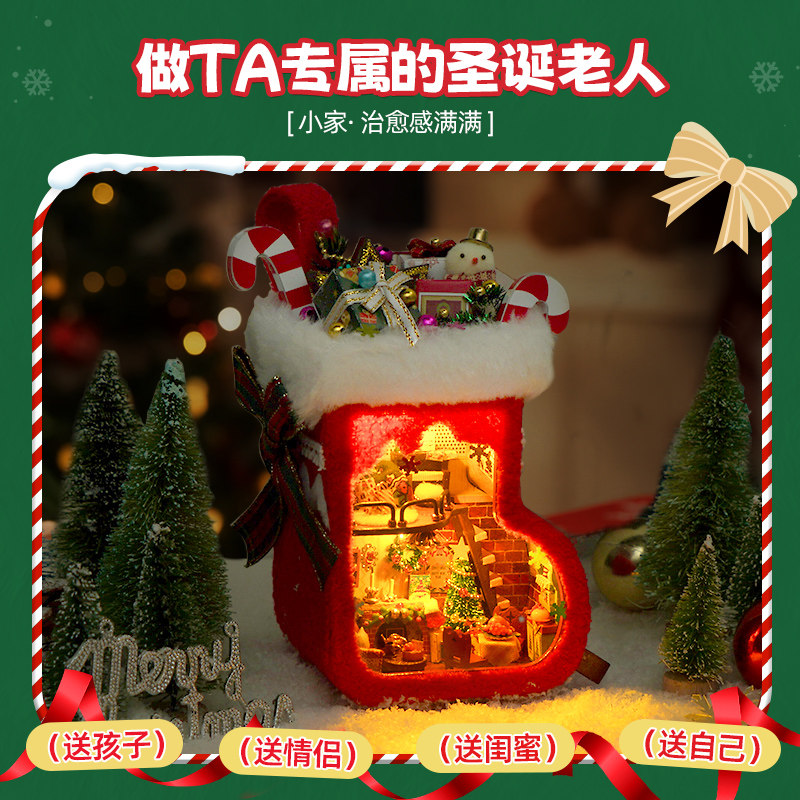 推荐理由:立体圣诞袜、微缩细节、温馨灯光、趣味手作