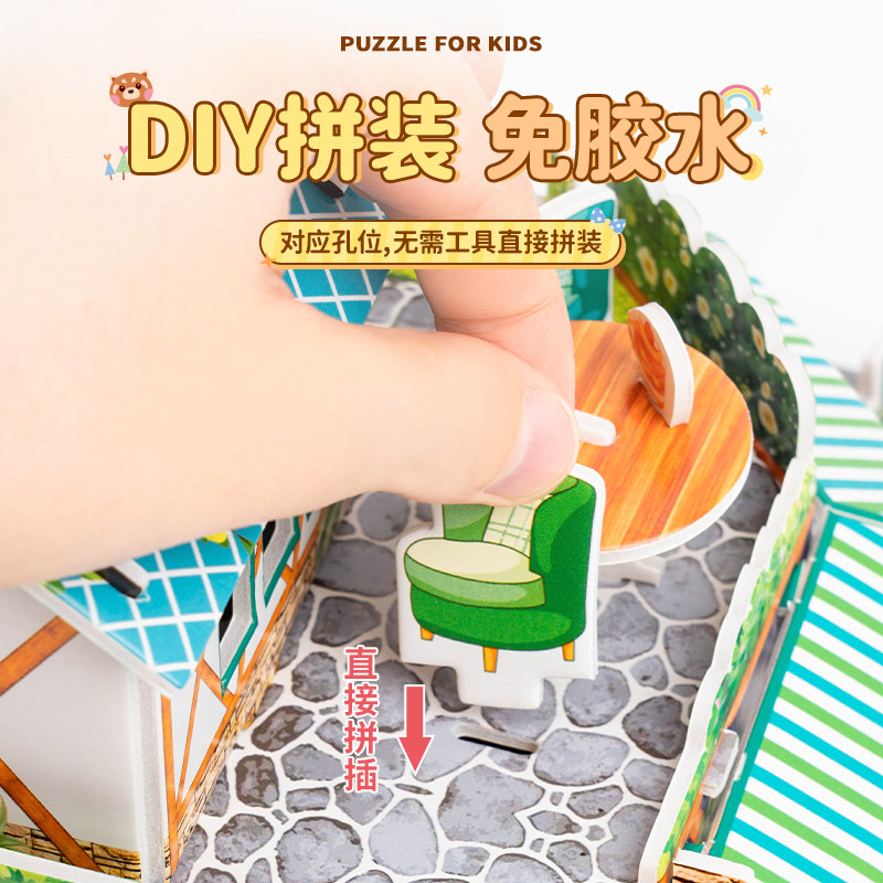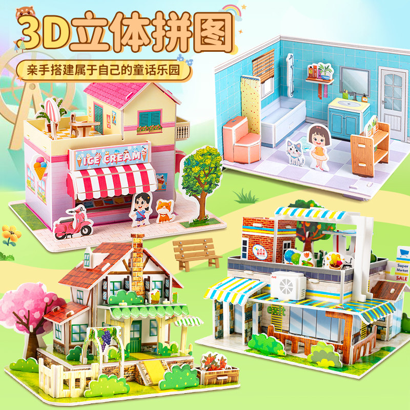 儿童3d立体拼图模型拼装小屋积木手工diy手工纸房子6女孩益智玩具