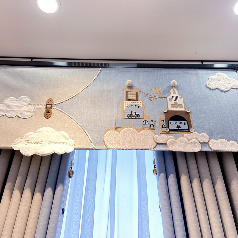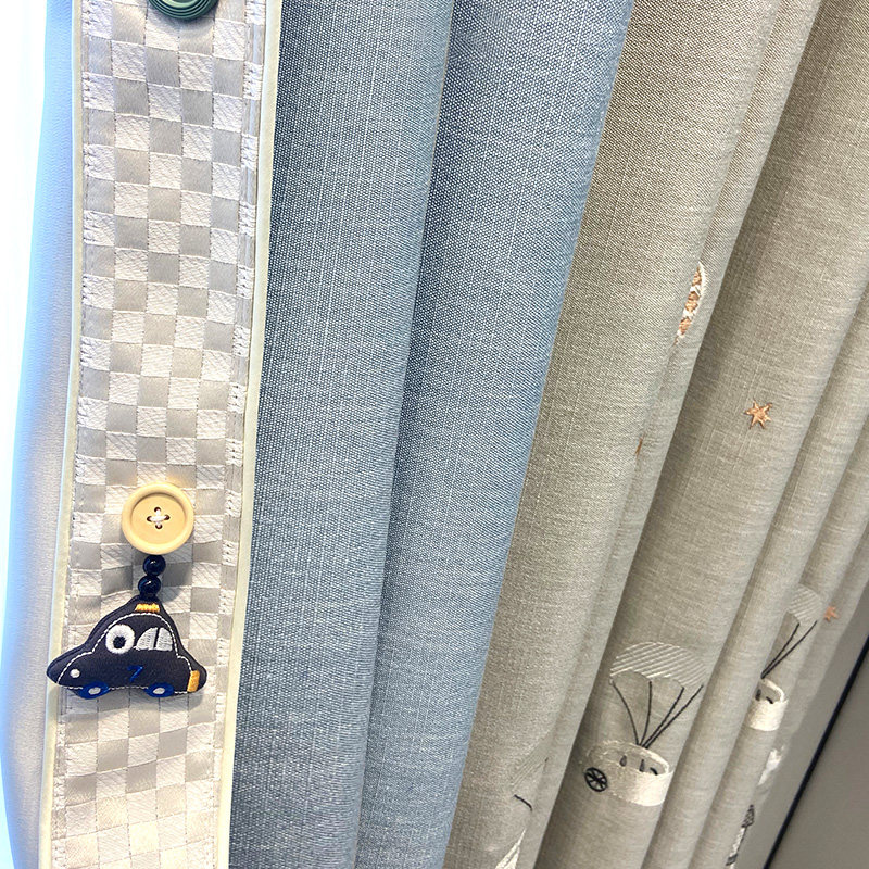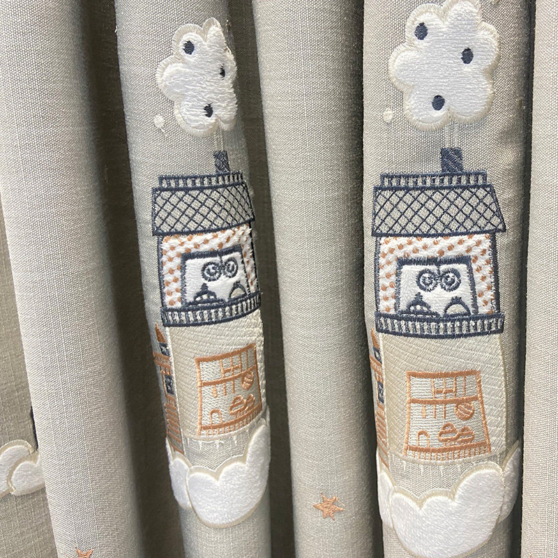 2022年新款儿童房男孩遮光卧室飘窗刺绣高档灰色定制窗帘异想空间