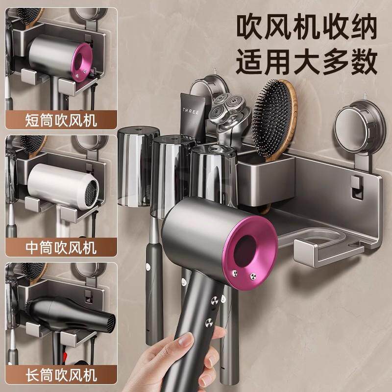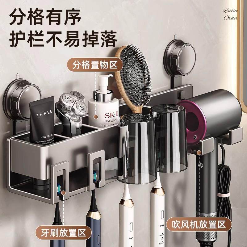 推荐理由:吸盘牙刷置物架壁挂式免打孔卫生间浴室刷牙杯吹风机牙膏牙具架子