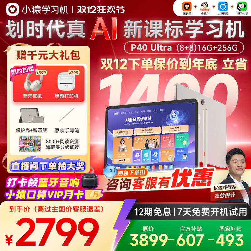 【询客服有优惠 国补500】小猿学习机P40Ultra猿辅导AI智能学习平板一体机大屏小学初高中通用全国国补