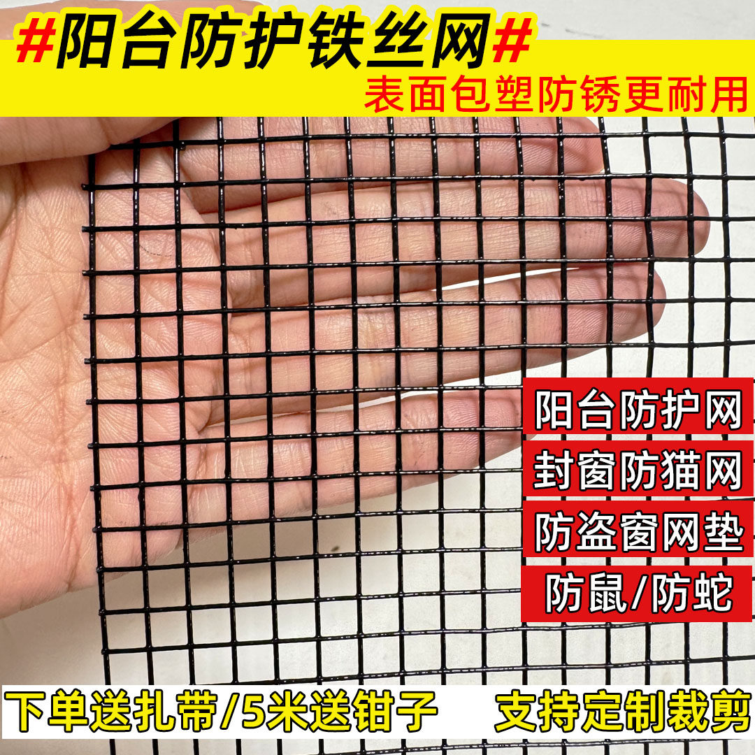防盗窗防护网黑色铁丝网阳台护栏网 防高空掉物 儿童宠物防坠网格