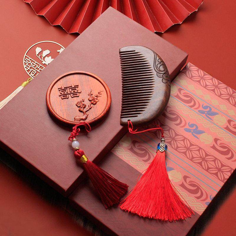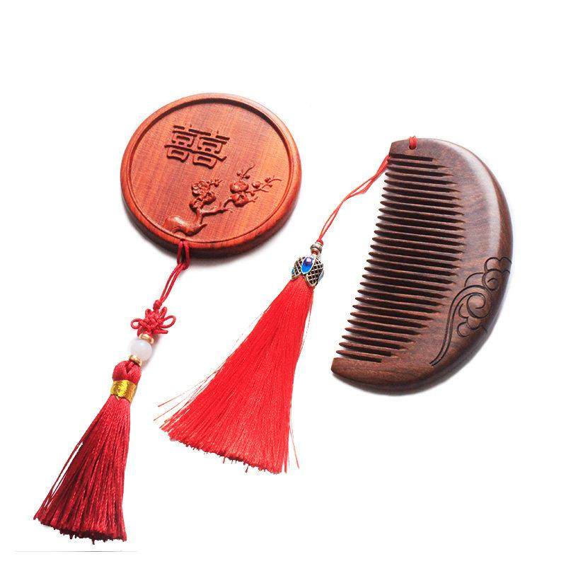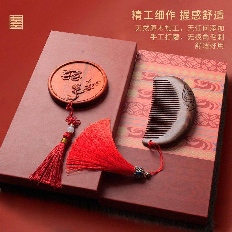 推荐理由:镜梳套装梳子女陪嫁妆金丝檀刻字婚庆木梳一对礼物结婚梳对梳按摩