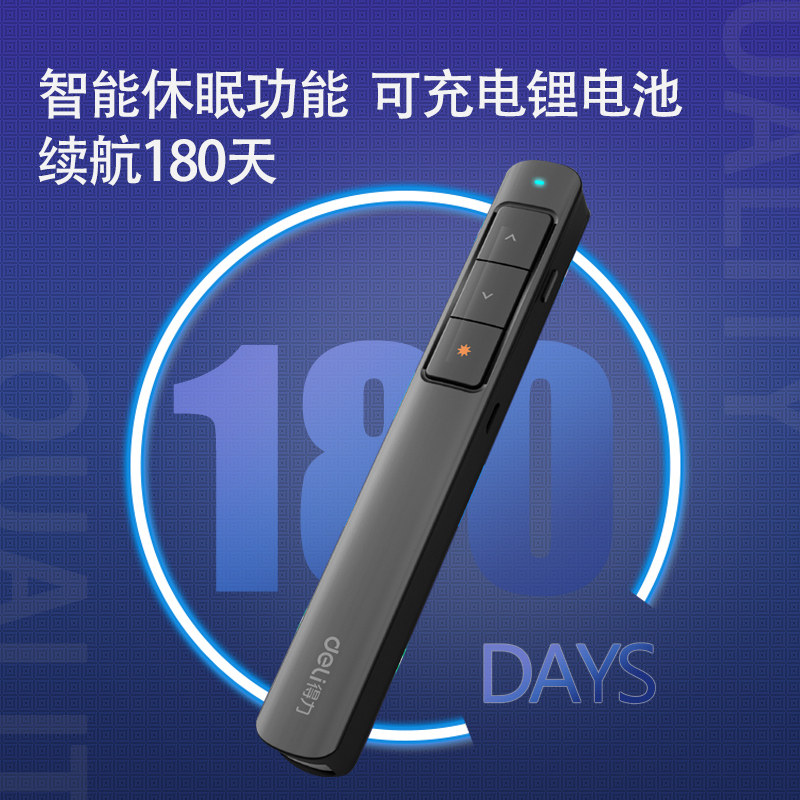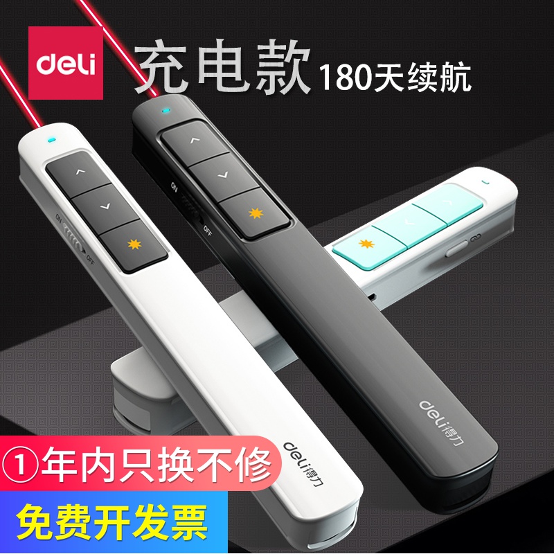 得力激光翻页笔100米视频会议电脑PPT30米激光笔USB充电遥控幻灯片会议多媒体发布射光笔教学培训电子教鞭器