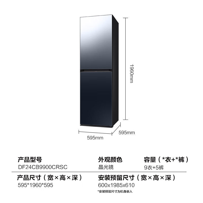 三星智能衣物护理机烘干消毒杀菌嵌入式衣柜干洗机DF24CB9900CRSC