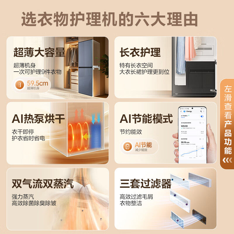 推荐理由:三星智能衣物护理机烘干消毒杀菌嵌入式衣柜干洗机DF24CB9900CRSC