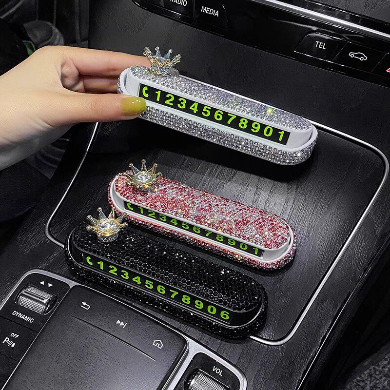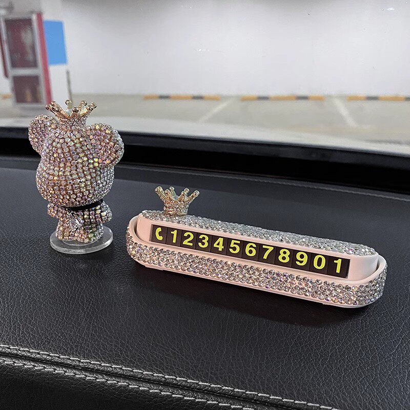 推荐理由:汽车临时停车号码牌镶钻小熊车内饰品数字摆件车载挪车电话牌女生