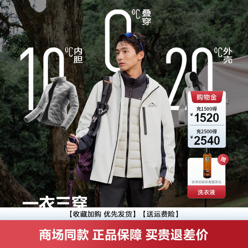 推荐理由:波司登短款户外冲锋衣羽绒服男女情侣款三合一防水登山服叠变外套