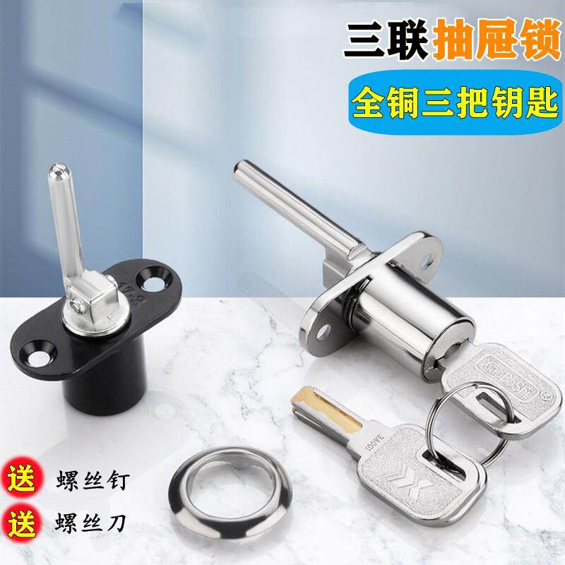 防盗办公桌柜子锁矮柜三联锁一锁三抽屉锁侧面文件柜锁头防盗锁芯