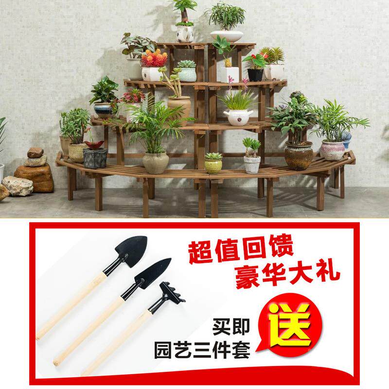 实木质转角花多层梯落地式阶多肉绿植阳台架餐厅室外木BYS花盆架