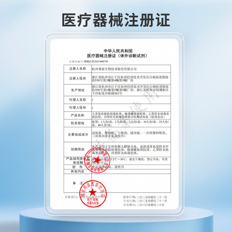 申基医药hiv检测纸艾滋病梅毒四合一试纸自检测试传染病四项性病