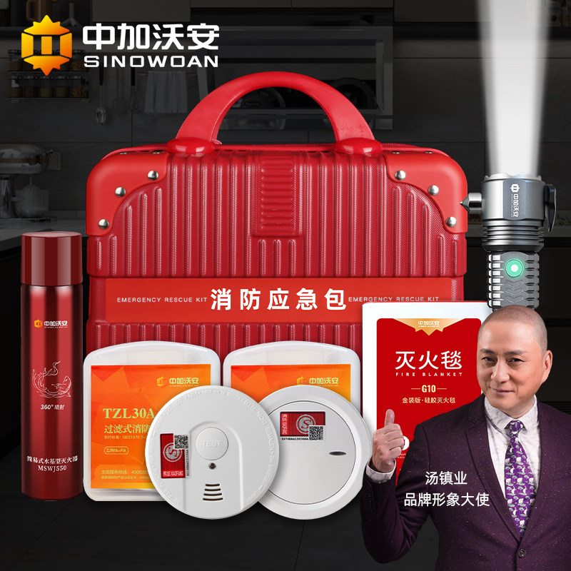 家用消防器材应急包救援箱全套四件套灭火器灭火毯面具套装组合