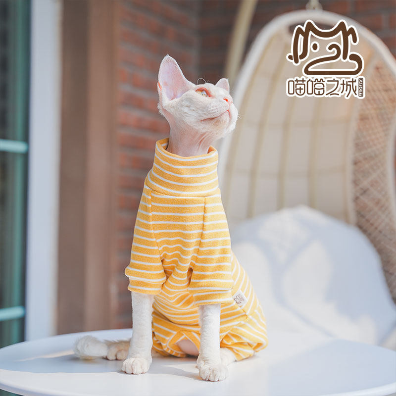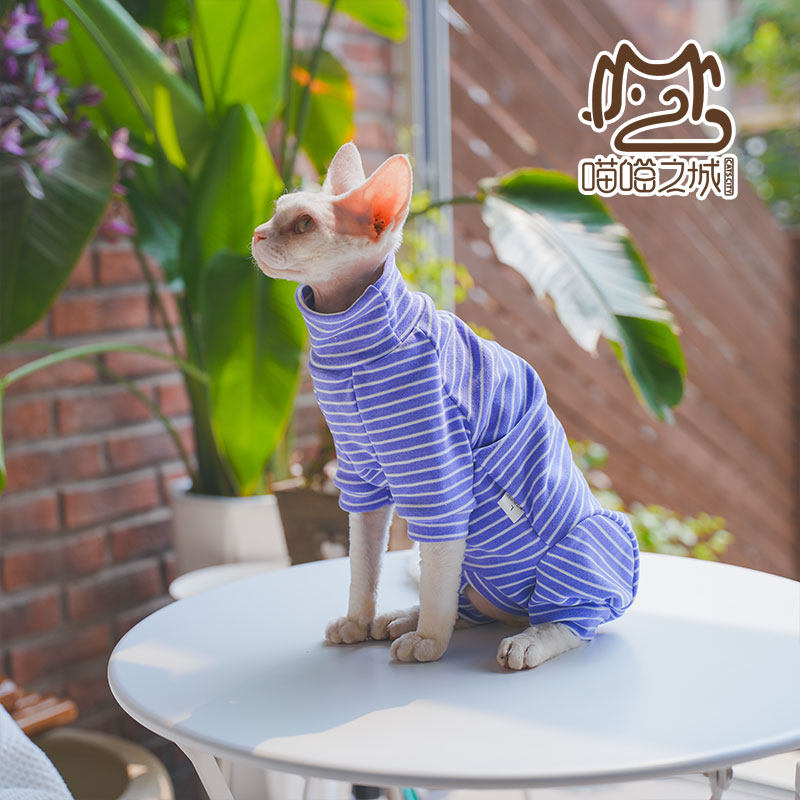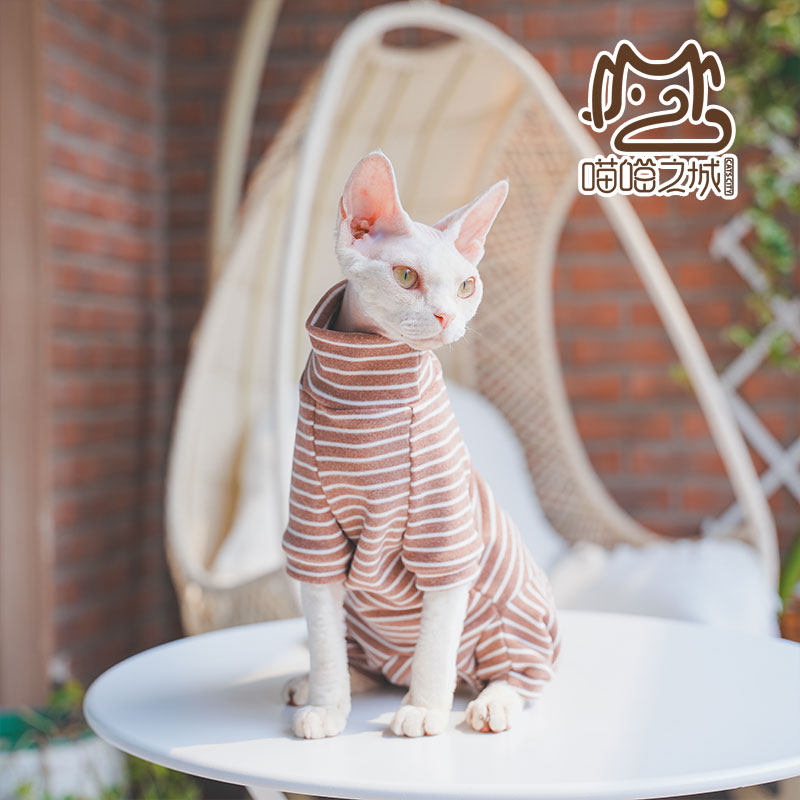 推荐理由:2025年秋无毛猫斯芬克德文猫衣服加厚保暖德绒条纹长袖包肚四脚衣