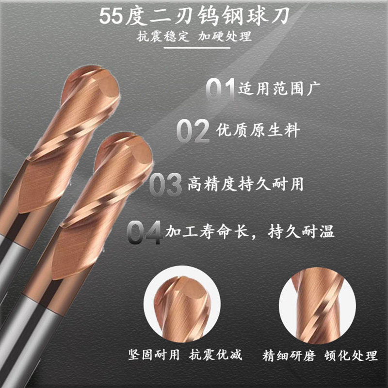 推荐理由:安亦55度钨钢球刀硬合金平底立铣刀cnc加长直柄涂层2刃加长立铣刀