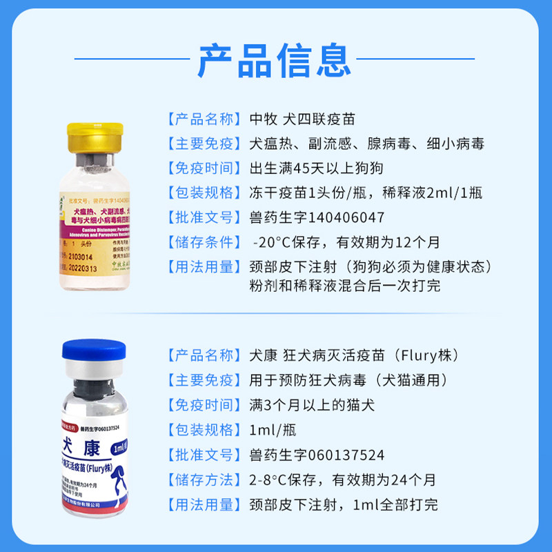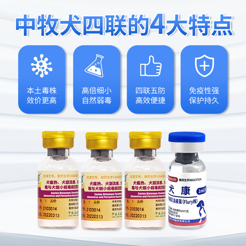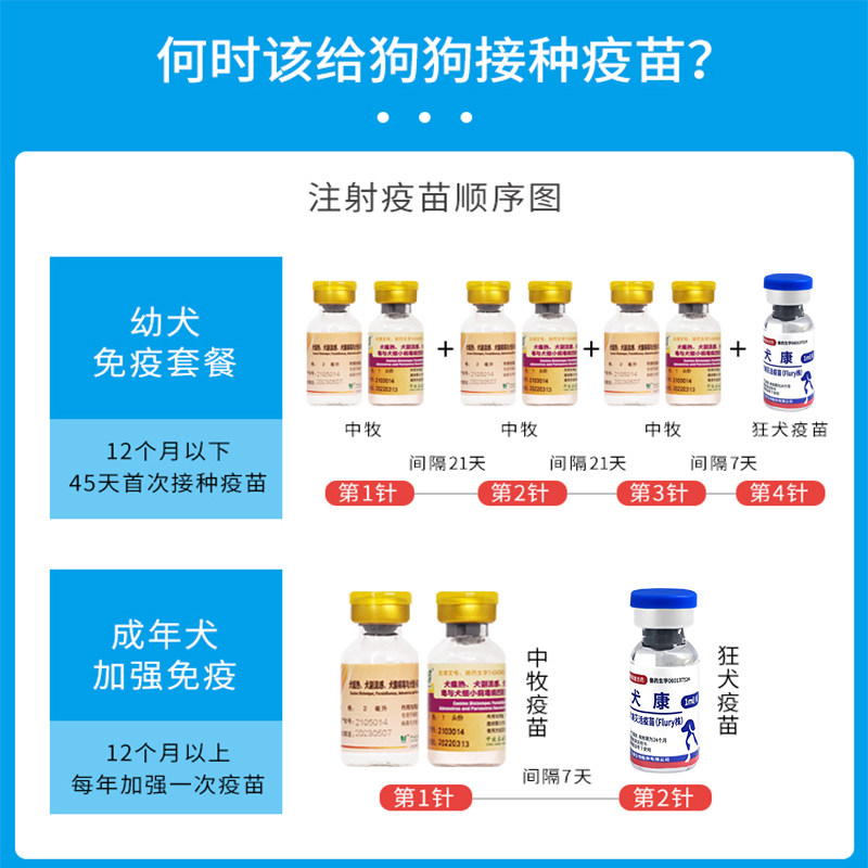 中牧狗狗疫苗幼犬四联疫苗套餐犬瘟细小狂犬预防针一套自打套餐针