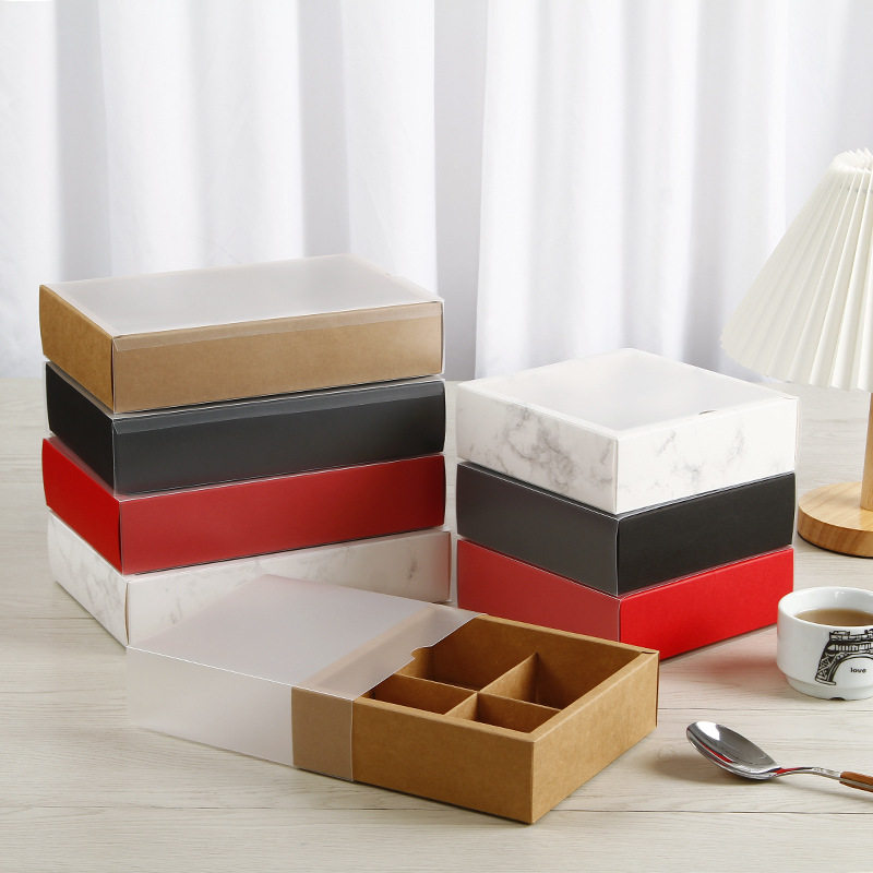 通用现货透明PVC抽屉盒纸盒 烘焙包装盒定制牛皮纸茶叶盒西点礼盒