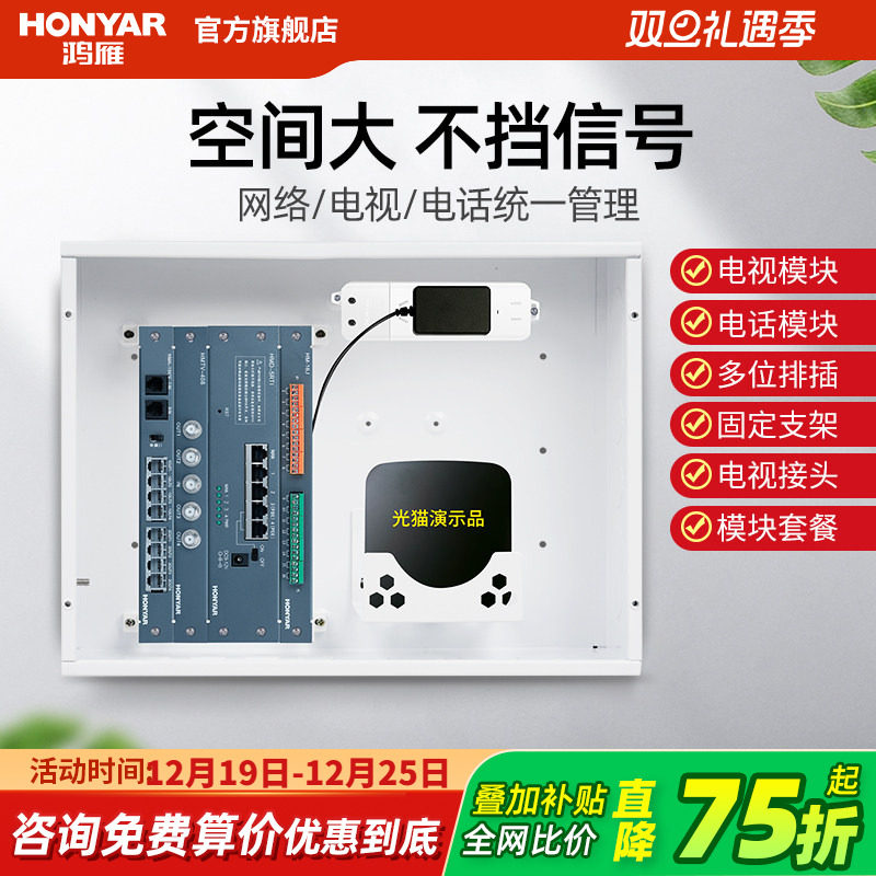鸿雁弱电箱家用多媒体集线网络信息箱模块暗装光纤入户配电箱大号