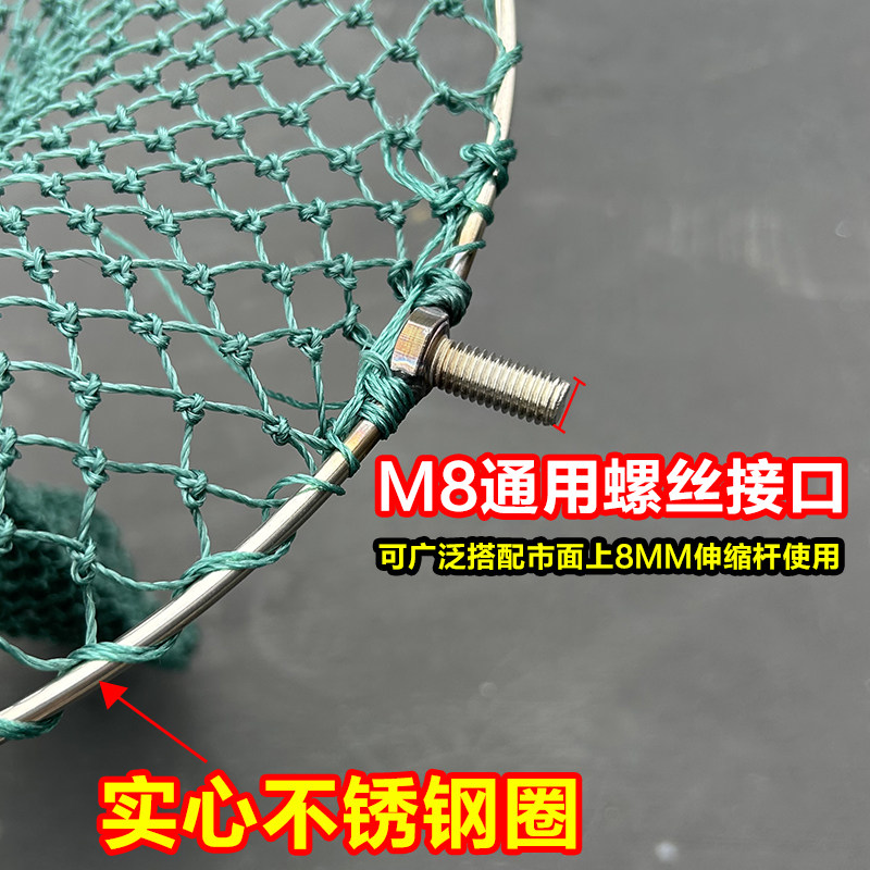 推荐理由:加粗实心不锈钢抄网头渔网捞鱼垂钓大物抄网手工48股加深一体抄网