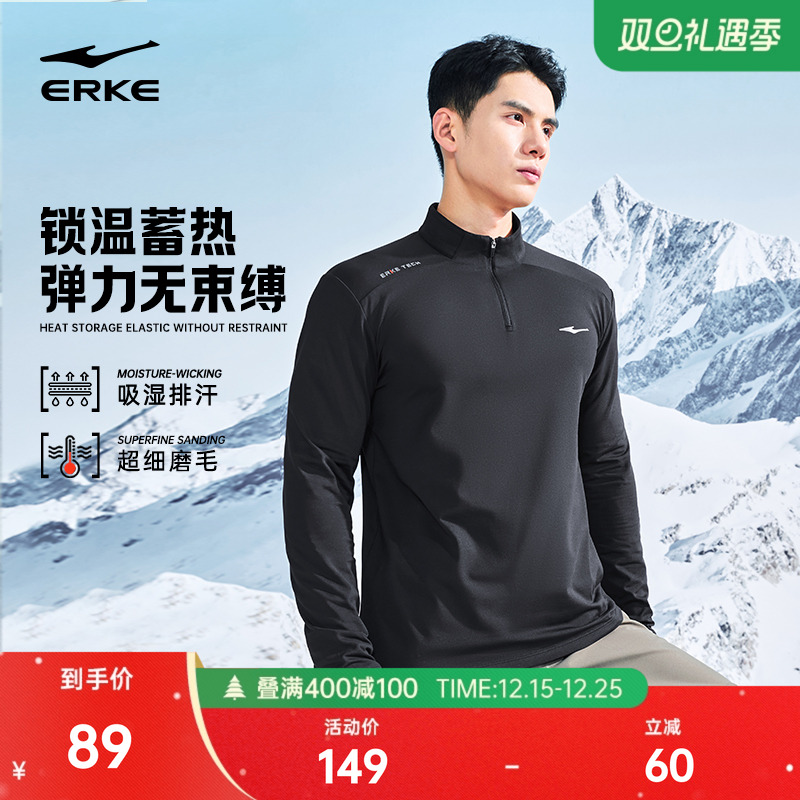 鸿星尔克长袖t恤男冬季新款男士加厚保暖跑步训练服运动上衣卫衣