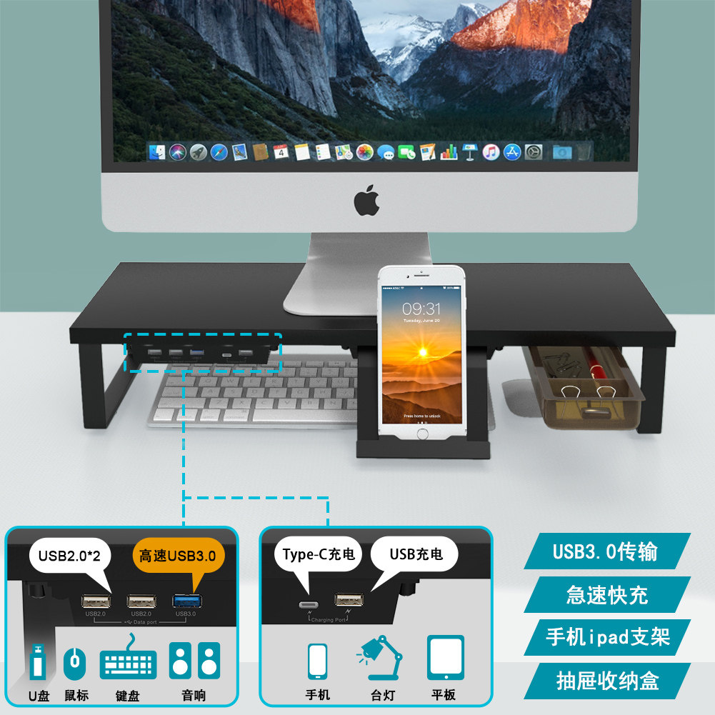推荐理由:加宽带USB拓展快充显示器增高架