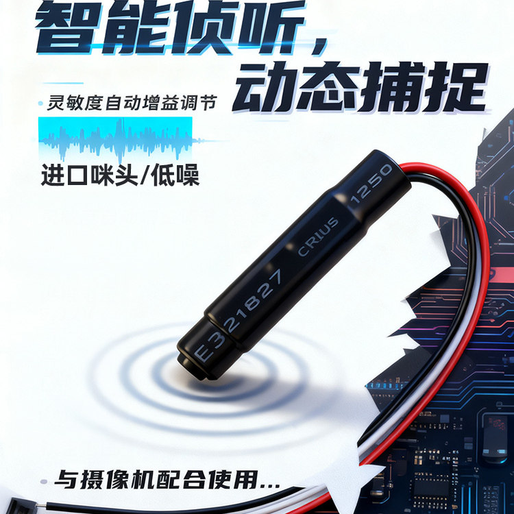推荐理由:监控网络摄像机探头内置高清拾音器线型声音采集器咪头麦克风识音