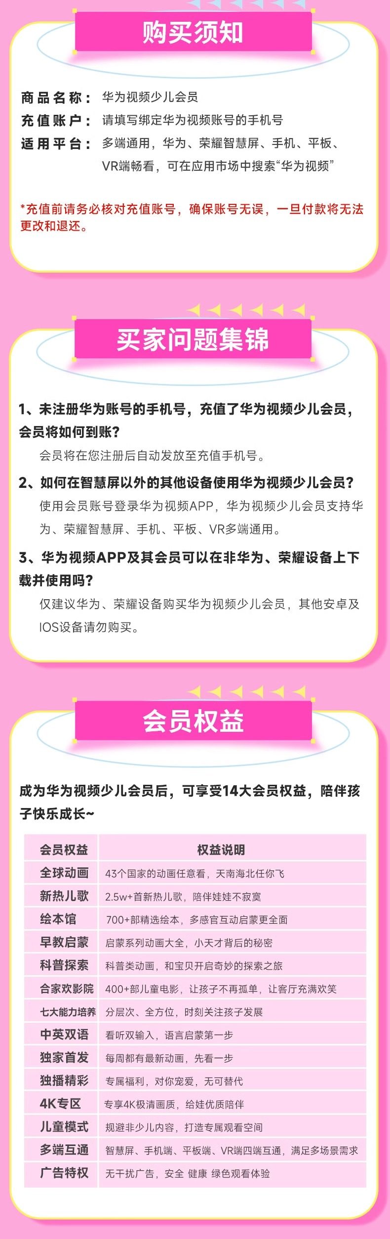 华为电视会员年卡 华为视频智慧屏全屏影视月卡 全屏少儿频道季卡