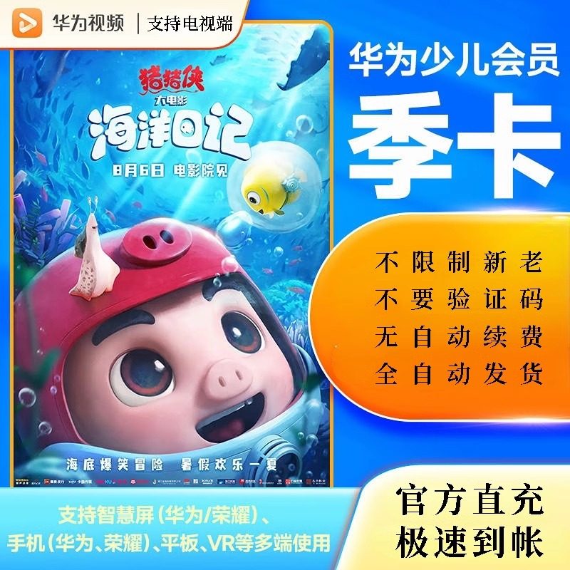 推荐理由:华为电视会员年卡 华为视频智慧屏全屏影视月卡 全屏少儿频道季卡