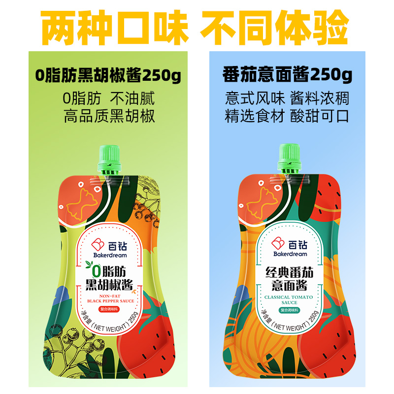 【百钻品牌,商超同款】低脂意大利面500g!番茄酱+黑椒两种口味!低脂高蛋白!儿童早餐,减肥运动达人都喜欢!操作简单!懒人必冲的好物!