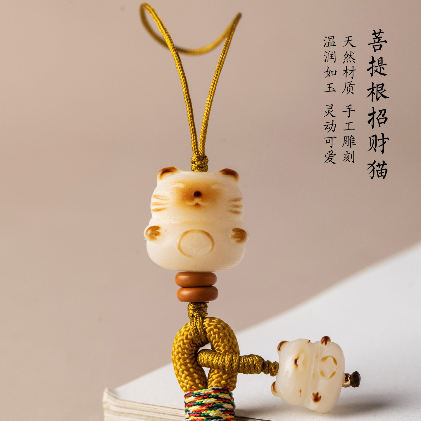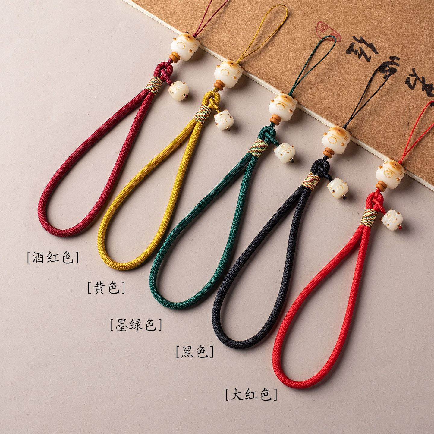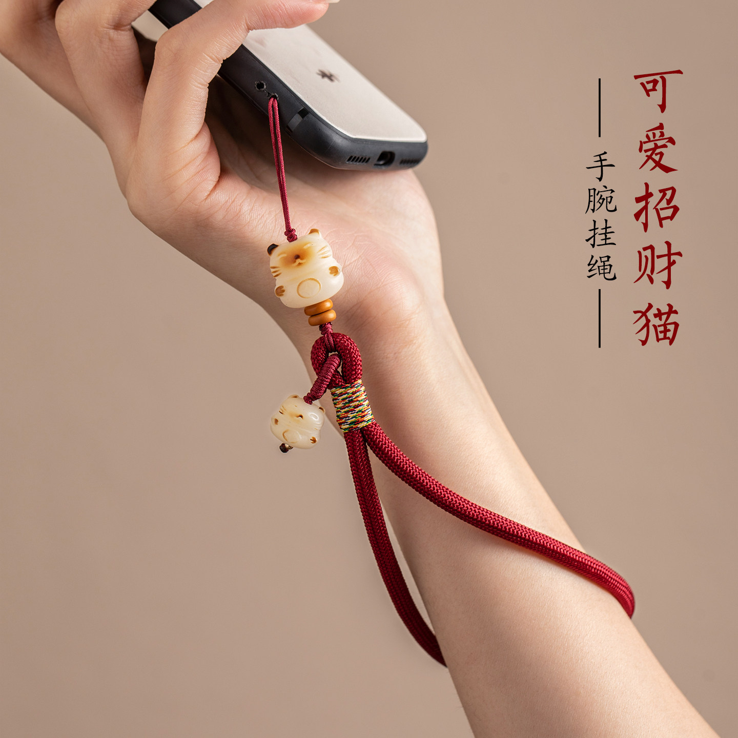 琼睿可爱菩提招财猫手机挂绳短款手机链手腕绳吊坠挂件精致U盘挂饰手工编织手机壳挂绳相机绳子红色小挂件女