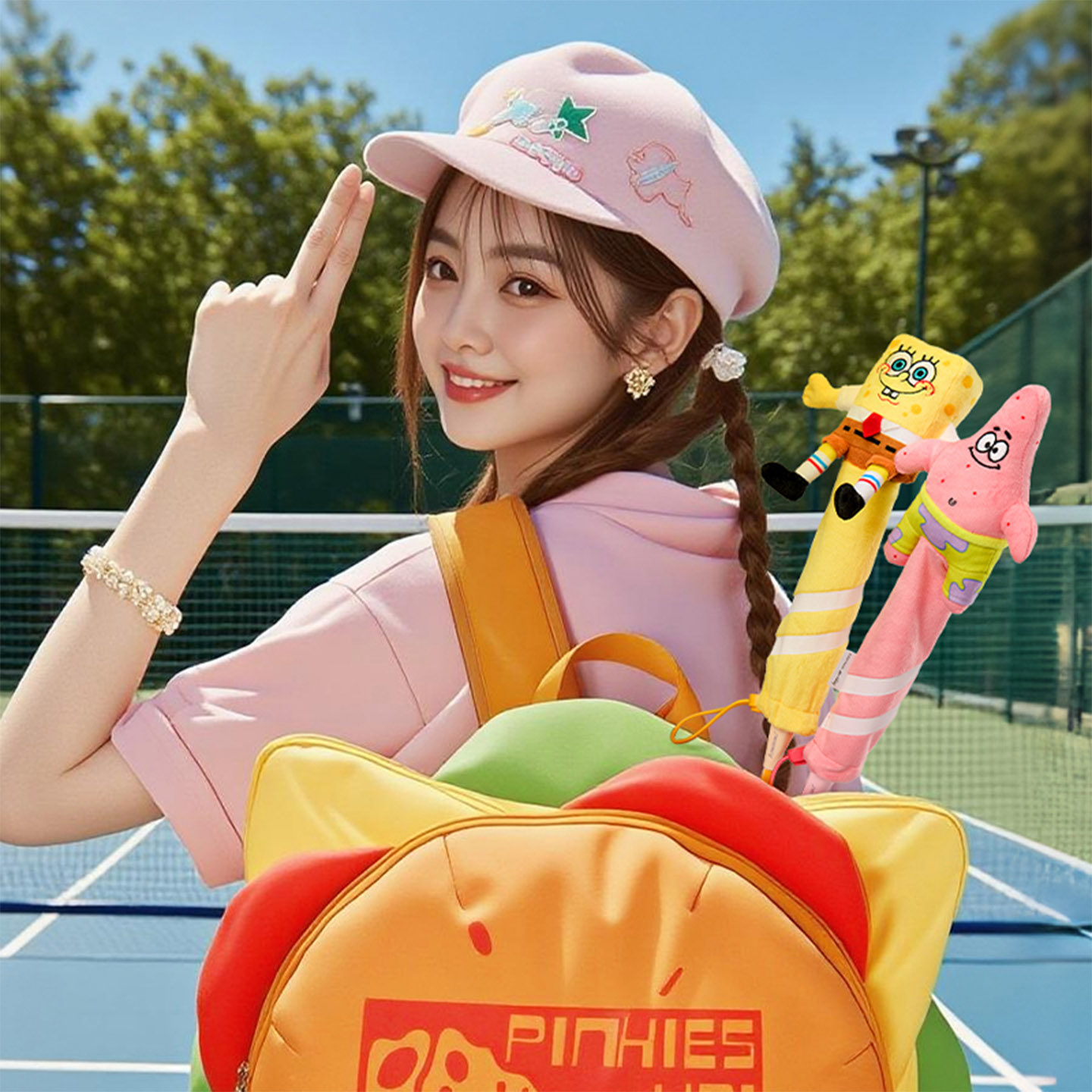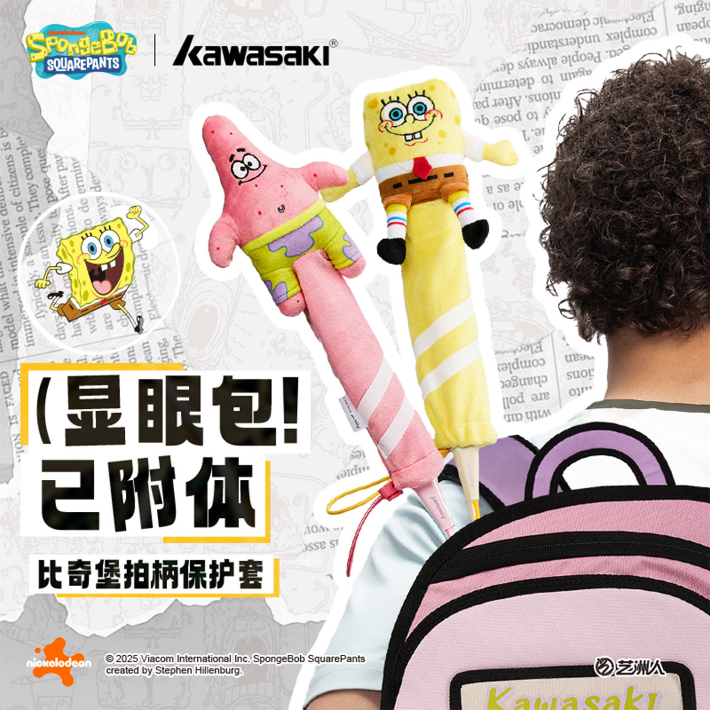 川崎海绵宝宝保护套羽毛球拍柄派大星章鱼哥可爱卡通毛绒挂件挂饰