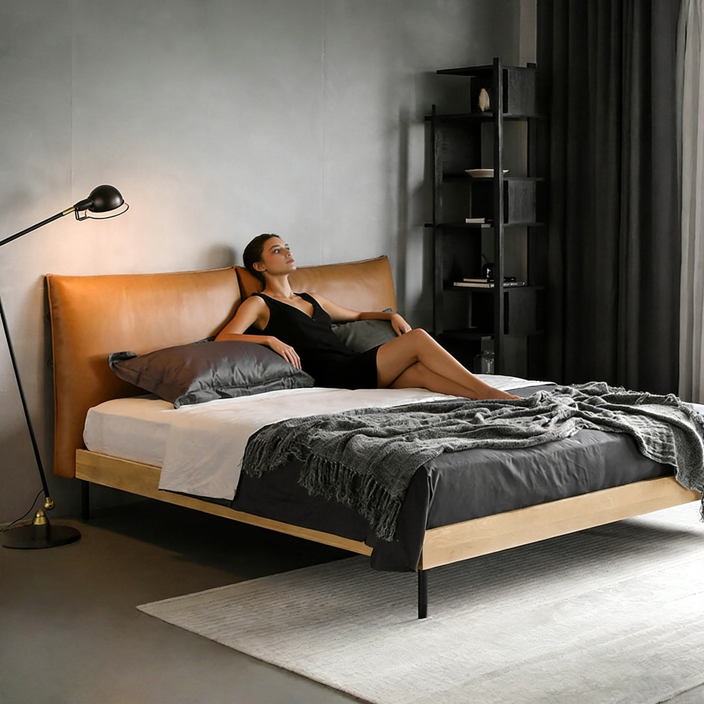 意式极简真皮床主卧高端大气现代轻奢高级感软包床卧室1米8双人床
