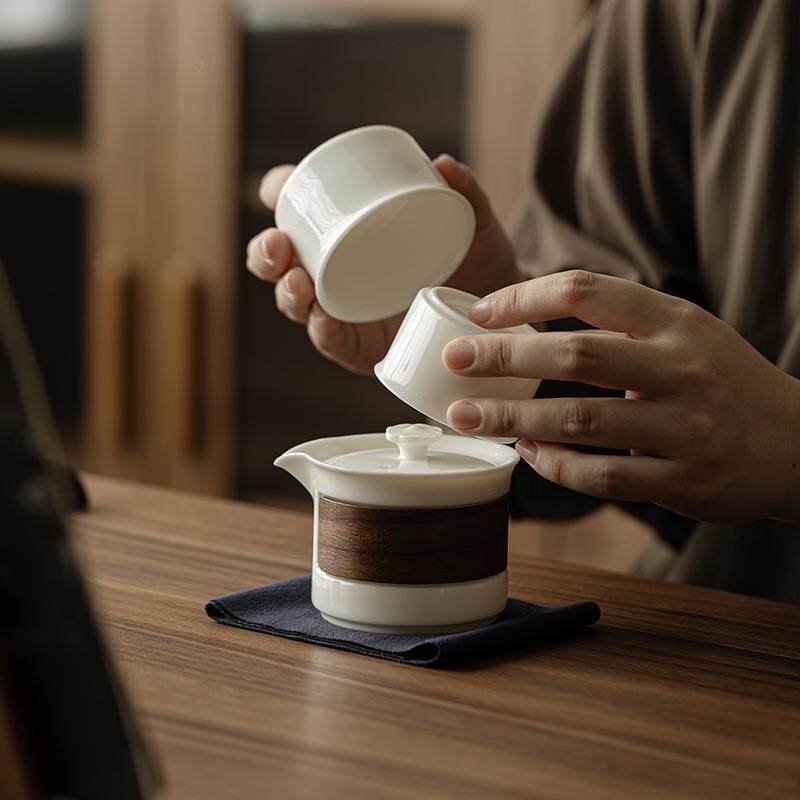 观岚羊脂玉白瓷便携式旅行茶具套装户外露营随身包茶水分离泡茶器