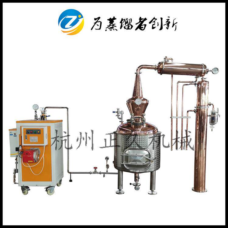 250升全紫铜玫瑰花纯露精油蒸馏设备两级冷却花草植物萃取反应釜