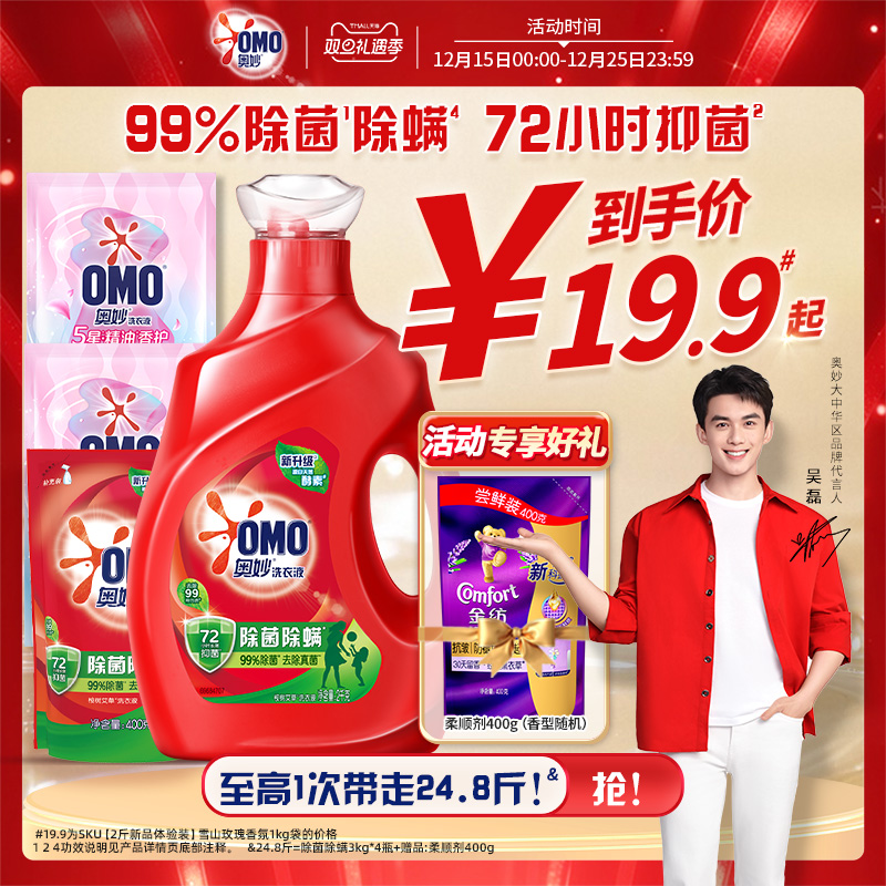 奥妙天然酵素除菌除螨洗衣液家用实惠装长效抑菌官方旗舰店正品