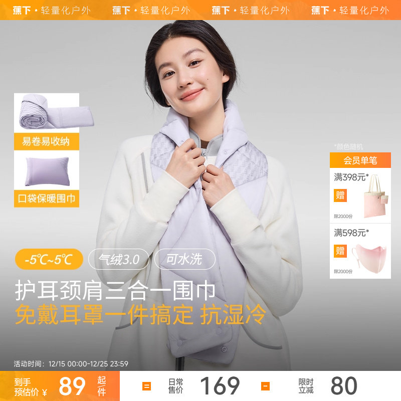 蕉下气绒围巾女男款2024冬季秋季外搭保暖加厚行护颈防寒马甲围脖