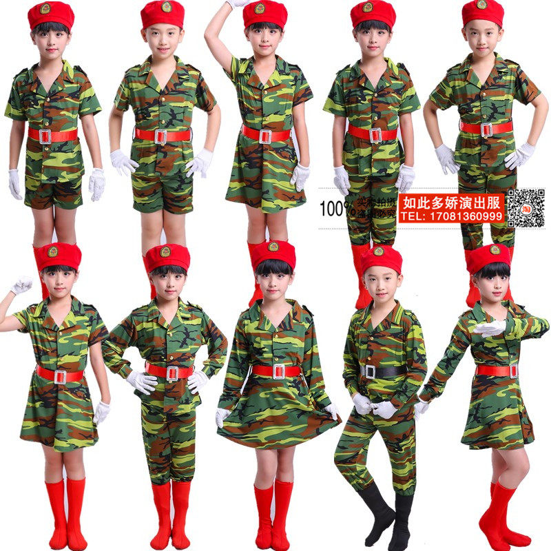 推荐理由:儿童水兵舞蹈迷彩表演服中小学生大合唱男女兵军装迷彩演出服套装