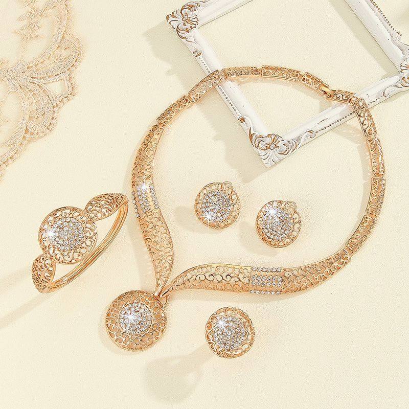 欧美夸张镶钻圆圈项链耳环戒指手链四件套饰品套装女装饰个性