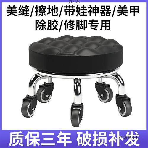 家用滑轮矮凳美缝儿美甲修脚擦地小圆凳儿童学步凳带娃小板凳