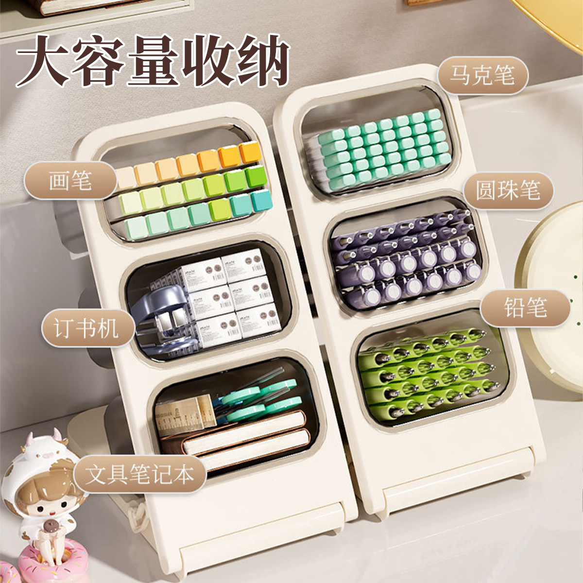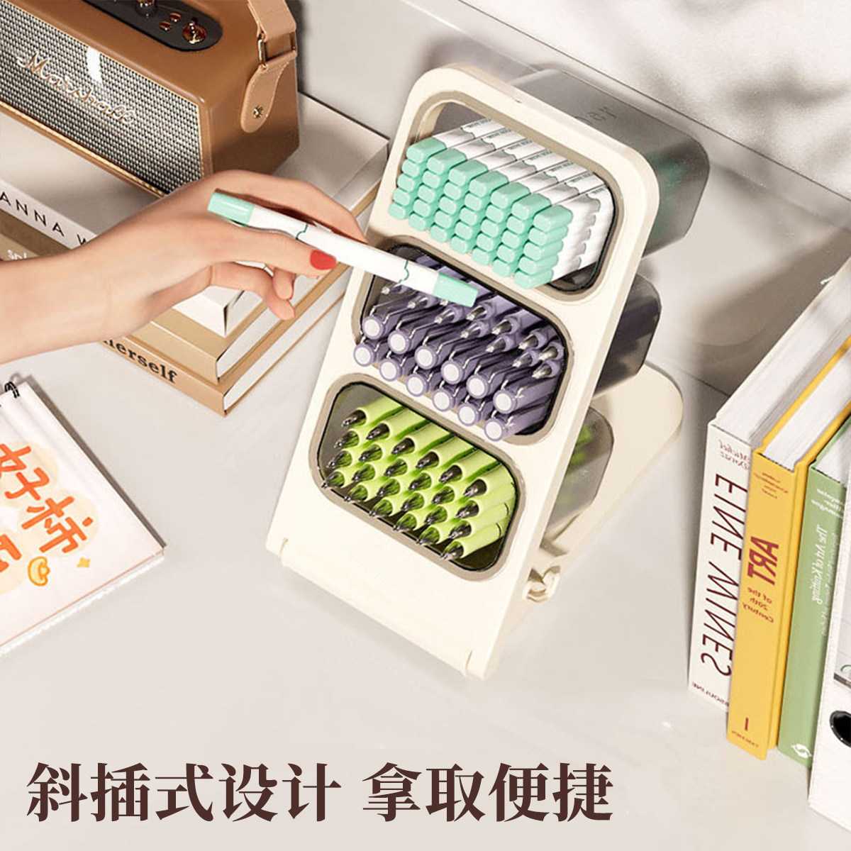 可拆卸斜插式笔筒超大容量马克笔收纳盒儿童男孩女孩高颜值ins风学生书桌桌面笔桶水彩笔画笔办公室笔盒笔架
