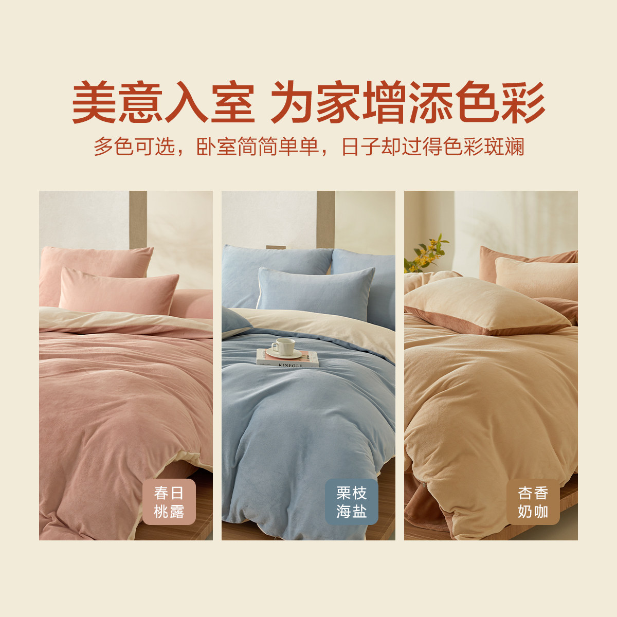 水星家纺牛奶绒四件套A类抗静电抑菌保暖套件秋冬暖绒床品25新品