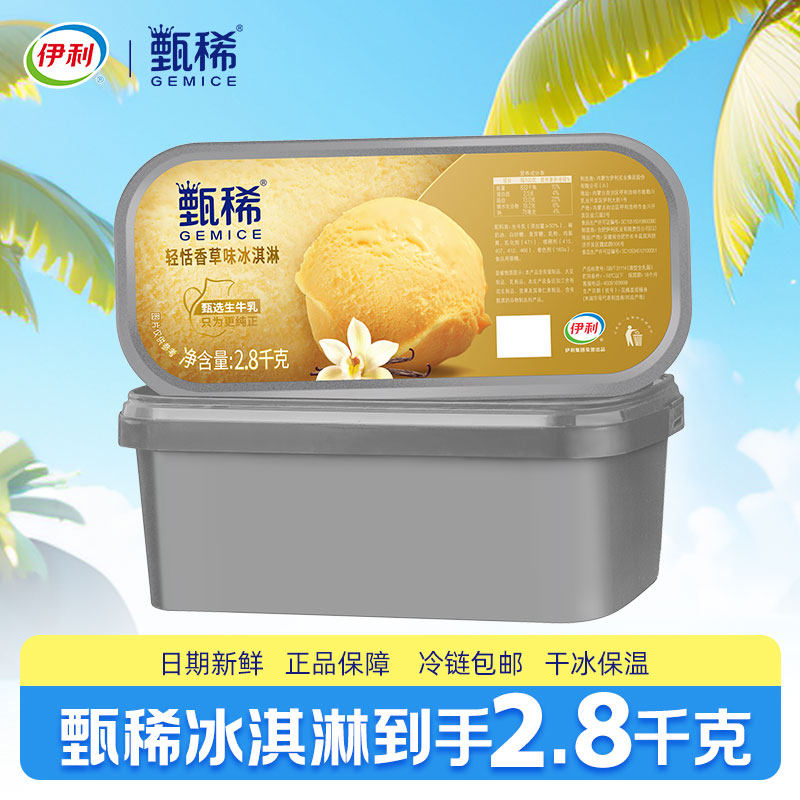 伊利冰淇淋2.8kg甄稀生牛乳大桶装高端雪糕商用餐厅囤货冷饮批发
