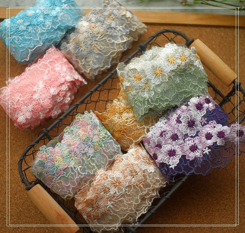 推荐理由:清新花朵彩色网纱刺绣蕾丝花边辅料diy服装旗袍娃衣汉服装饰花边