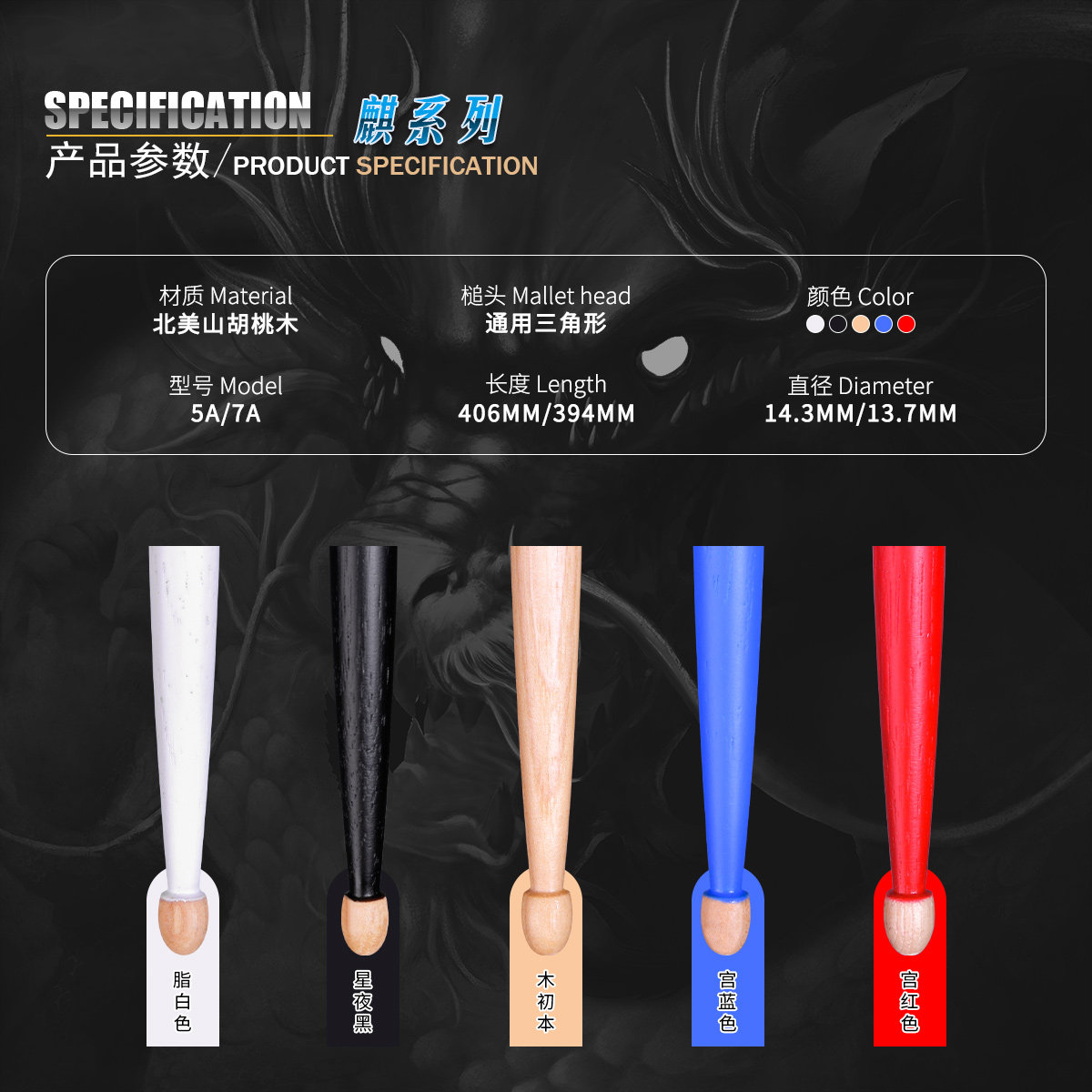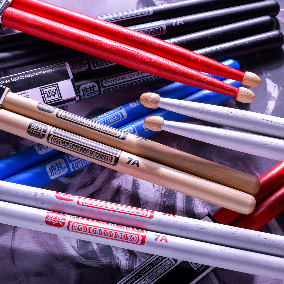 架子鼓鼓棒5A 7A 胡桃木质彩色实木鼓槌 麒系列 厂家直发正品保障