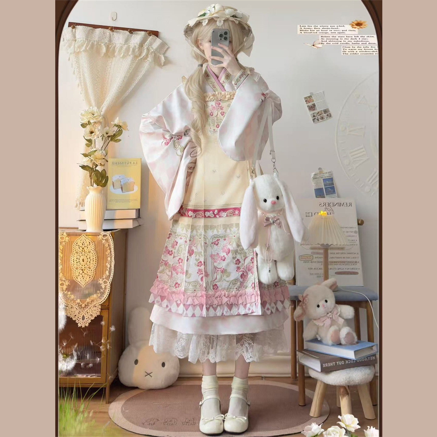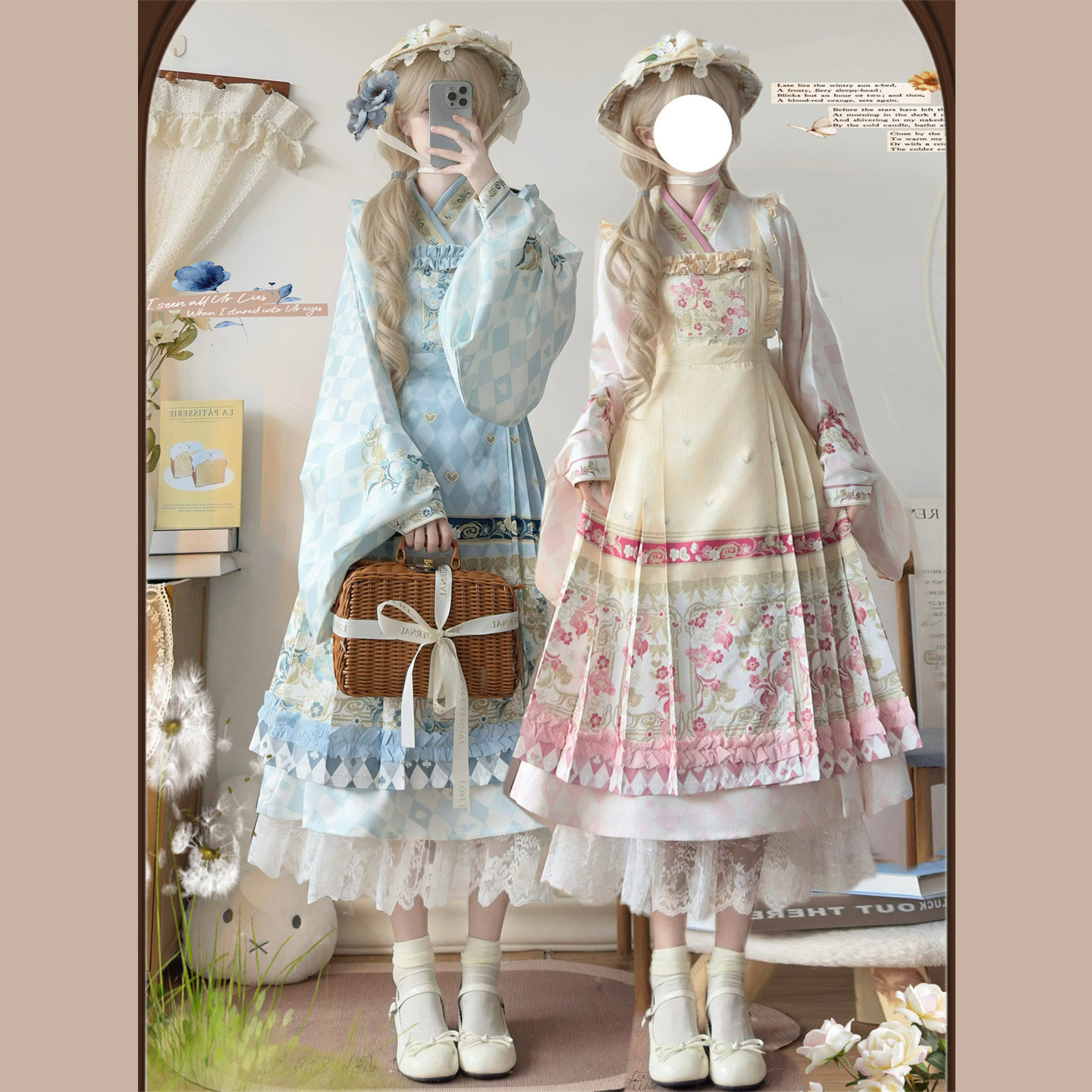 推荐理由:鼎尚原创【童话镇】汉洋折衷汉服女套装明制粉蓝色冬装马面裙新款