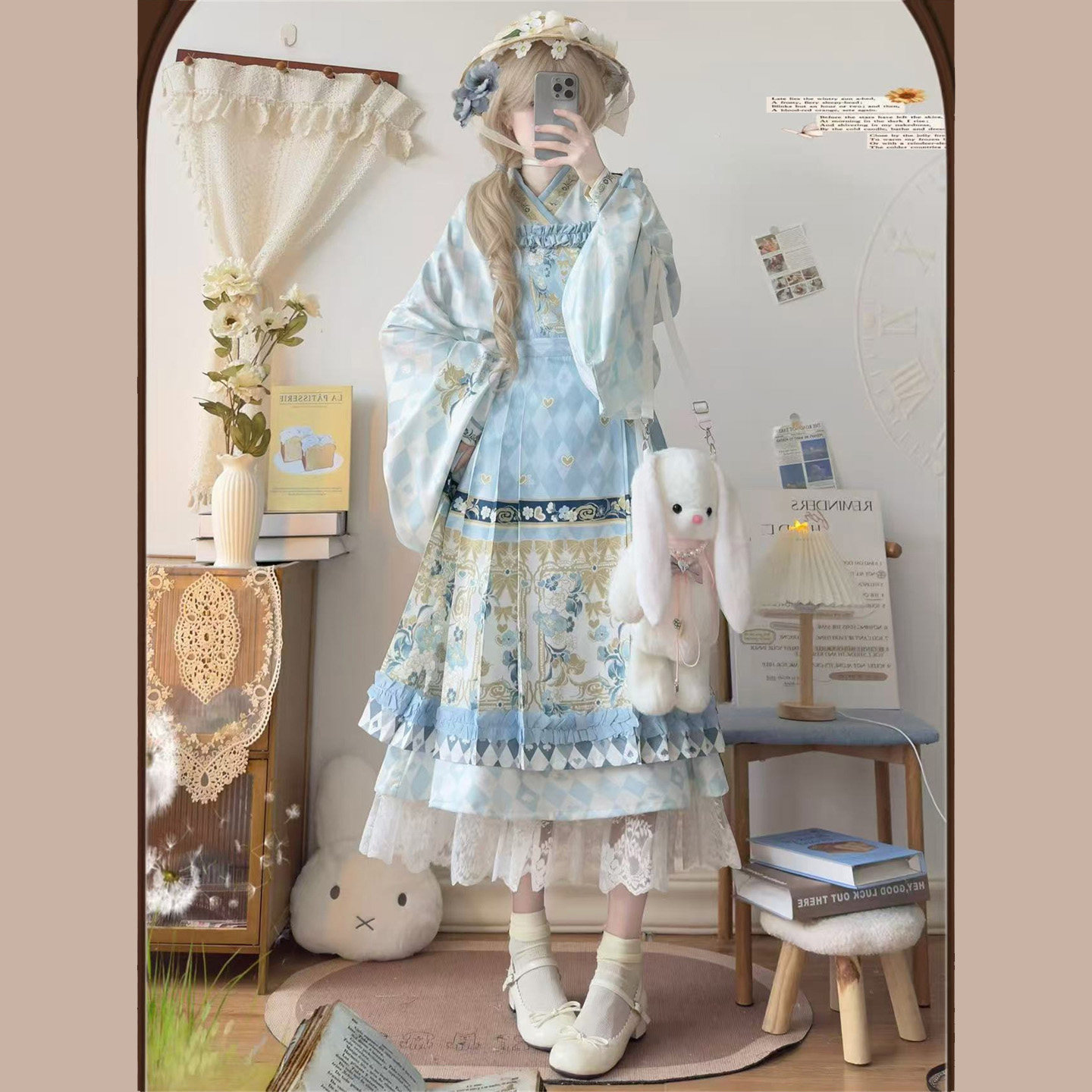 鼎尚原创【童话镇】汉洋折衷汉服女套装明制粉蓝色冬装马面裙新款