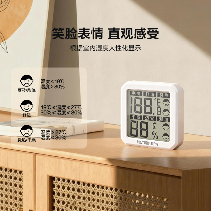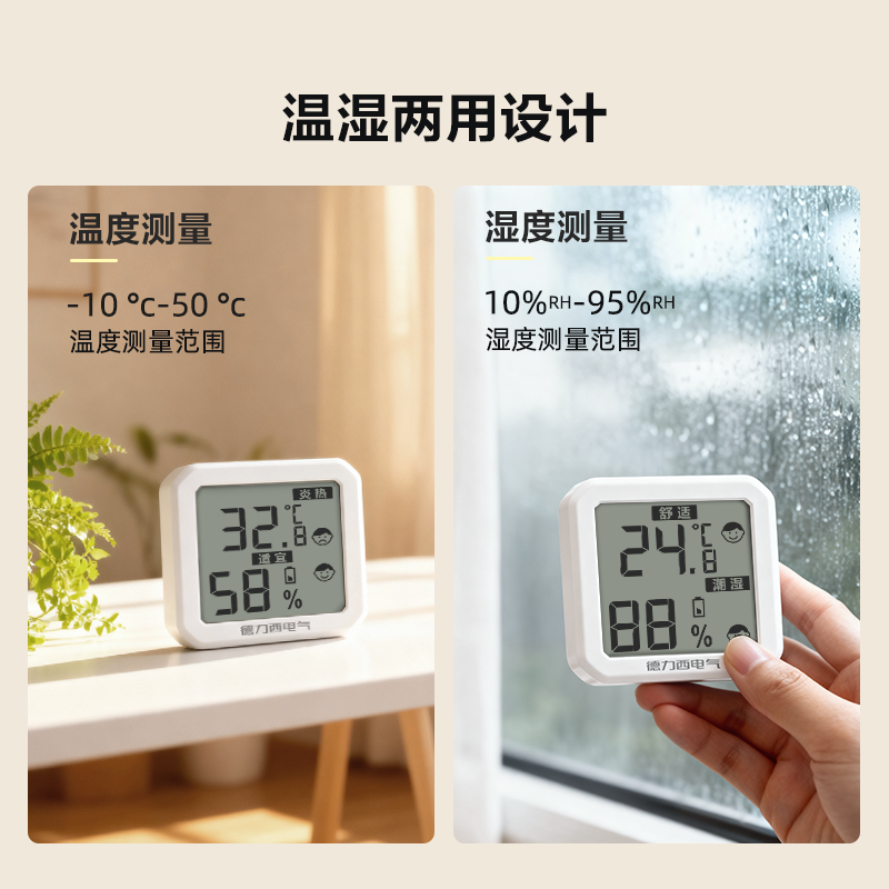 德力西温湿度计室内家用房间冰箱精准显示器高颜值高精度婴儿房