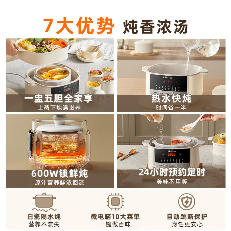 小熊炖盅隔水炖家用电炖锅全自动多功能炖汤煲汤锅煮粥锅陶瓷炖锅